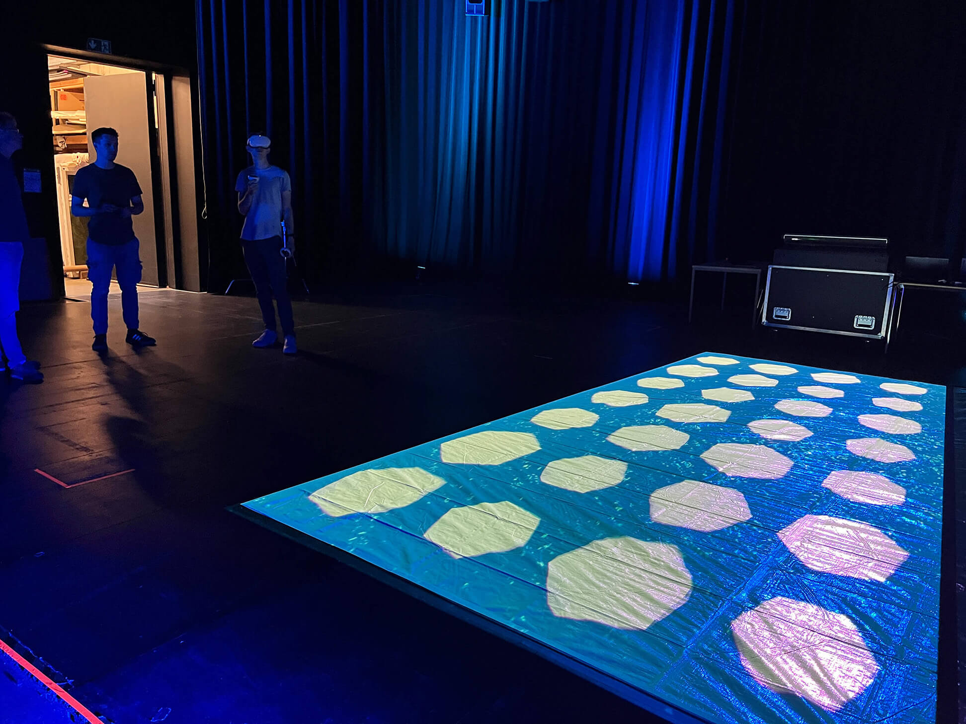 Eisschollen finden. Die Installation basiert auf einer eigens entwickelten Game-State-Machine in Unity, einem lokalen Streaming-Setup und Live-Compositing mit vMix. Präsentiert wurde das Projekt beim Rundgang der HAW Hamburg.